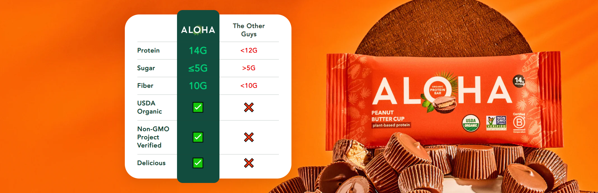 14g of Protein in Every Bar Mouthwateringly delicious ALOHA plant-based protein bars...